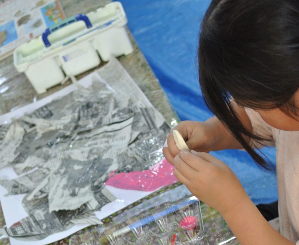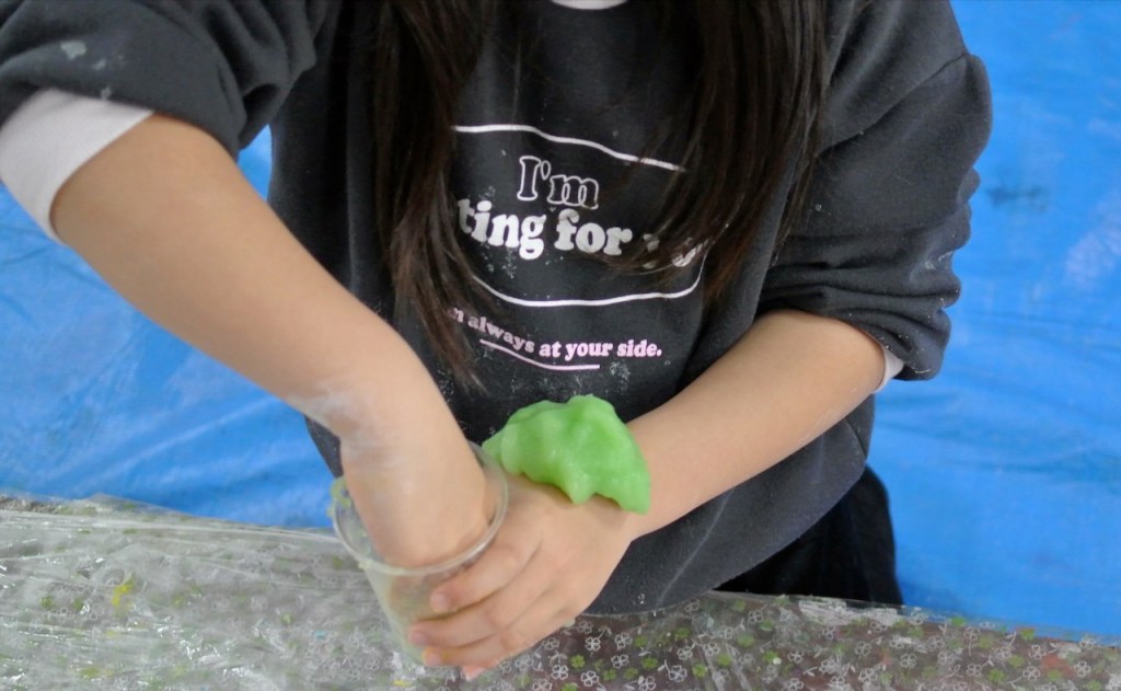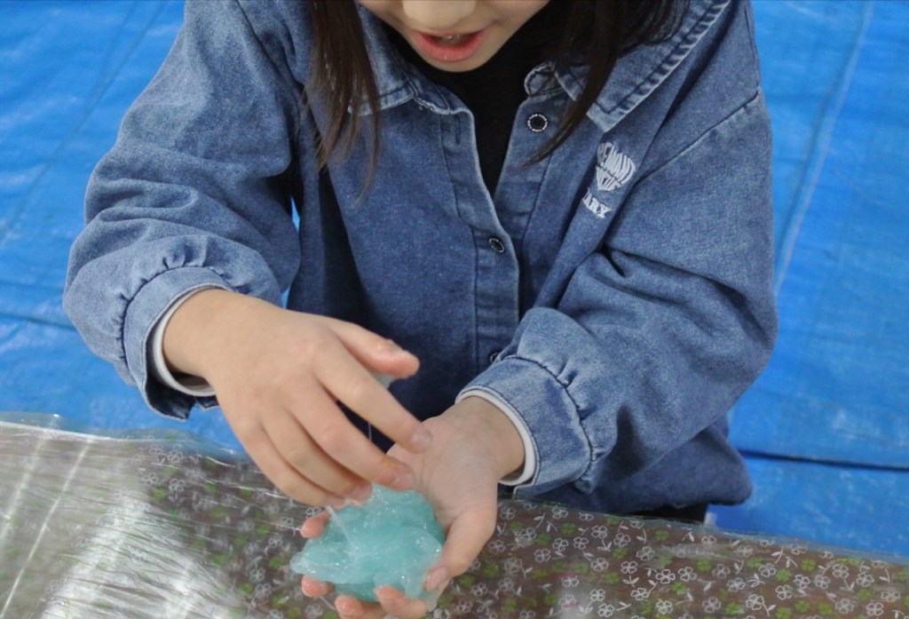 で、今回は3種類のスライム・・・一応なんでもリハーサルってのをしているんですが・・・で、「うん、バッチリ」って感じですんなりいきまして・・・さて!はじまりはじまり〜・・・ま、いつものタイプはいつも通りでしたが・・・違うタイプのが・・・あれ?あれ?あれ?なんか・・・なんだろう・・・思った感じにならない・・・みんなもいろいろ「こぉちゃう?」「あ〜ちゃう?」と試してくれたんですが・・・塩加減匙加減湿度・・・???でもみんなが試行錯誤してくれたのは嬉しかった。造形はこぉでなくちゃ〜・・・