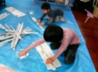 こちらは賑やか水曜クラス。最後までくじけずにカゴを編んでくれました・・・ な、な、なんでかぶりものになってんの〜(^o^;)/