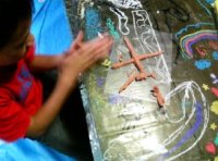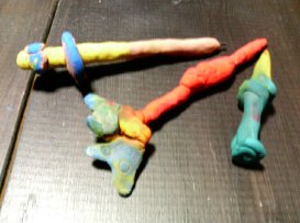 らぴすでは思うところがあって、あまり工作セットを使うことはないのですが、今回はおがくずでできた粘土と鉛筆の芯のセットを使ってみました。この粘土、サラサラした手触りで伸びがよく、よくくっつく!こどもたちには扱いやすい粘土だと思います。でも、芯のまわりに粘土を巻き付けるときに「ポキッ」「あっ!」「ポキッ」「げっ、芯が折れたあ」という悲鳴が時折きこえてきました。でも、そんなときはホラッ、小さい鉛筆をつくってくれましたよ。