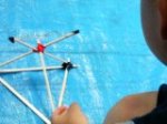 またまたとびものです。今回は発射台からビュワ〜〜ンと飛ばしました。人に向けて飛ばさないのは大前提ですが、万が一当たっても怪我のないよう、スチレンボードでロケットや飛行機・・・おにぎりやプリンを作った人もいましたが・・・いくつも作って飛ばしました。カタチや向きによって飛び方は様々、「すごいっ!!」「あ、あかんわ」「わっ!戻ってきた」「どこいったんやあ〜〜」と大騒ぎでした。