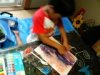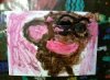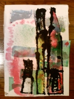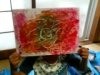 こちらは先日絵の具で遊んだ紙を下地に瓶を描いたしゅんすけくんの作品です。なんと味わい深〜い。おかあさんに「今日もいいの描いてくれましたよ」って言うと「また額縁買わなくちゃ〜(^_^)」とこたえてくれました。そう!せんせいが誉めるよりもおうちのひとが褒めてくれるのがこどもにとって一番!そして飾ってくれるのが一番!だとわたしはいつも思うのです。