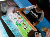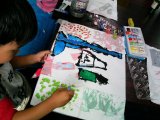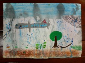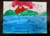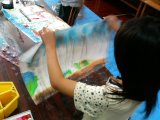 こちらはゆうだいくんの作品。いつになく無口に(^_^;)うっとりと雨のなかに溶け込んでいる様子だったので、声はかけずに見守りました。なんだか雨の音が聞こえてきそうですね。写真では少しわかりにくいですが、実物はしっとりと雰囲気のある絵です。