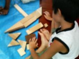 木片でアートしているのはしんくんです。小さい頃から(教室内では)落ち着いた彼ですが、作品はなかなかダイナミックでわたしはいつも楽しみにしています。