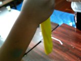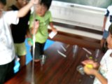 毎度おなじみのスライムです。最近は学校などでも作る様だし、らぴすっこたちは平均5〜6年は教室に通ってくれるので、もう何度も作っています。でもでも、この感触、たまらなく楽しいんでしょうねえ。「せんせい、またスライムやろうやあ!」とリクエストされるんです。大きい子も小さい子も入り交じって大はしゃぎのひとときでした。