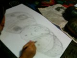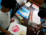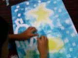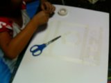 写真では何やってんだかさっぱりわかりませんね(^_^;)ケント紙にマスキングテープで絵を描いています。