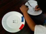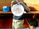 カボチャで疲れ果てたので紙皿を使った簡単工作。みんな大好きな飛びものです。この円盤ほんとによく飛びます。教室のすみで背中を向けているふたりは「秘密研究所やねん」と制作に励んでいました。
