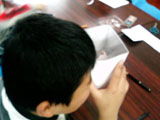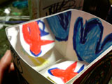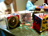 中に2枚の鏡を向かい合わせに貼付けた箱をつくりました。のぞいてみると自分が描いた絵がずう〜〜〜〜っと続いて「いったいどこまで続いてるんだろう?」って不思議な感じです。