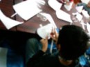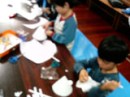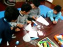 さて、結構簡単な工作なのですが、さすが凝り性のらぴすっこ、2時間めいっぱい使って制作してくれました。最後に教室を暗くして点灯。「うっわ〜〜めっちゃきれい〜!!」と、しばしクリスマスムードに浸っていました。