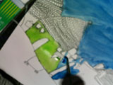 こちらは制作中のゆめちゃんです。水性サインペンで線描きしたので絵の具を塗るとにじみます。でも彼女、にじみを巧く味方につけて、とってもいい感じです♪