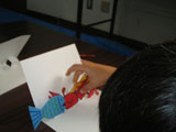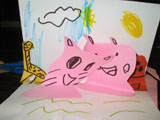 後半は簡単なポップアップカード。数種類の仕組みを紹介したのですが、いちばん単純なものがイメージがわきやすかったのか人気でした。左ははるとくん、右はあいこちゃん。兄妹揃っていつもあたたか〜〜い作品を生み出してくれます。