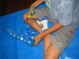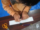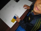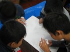 こちらは3歳になったばかりのてるくんの作品。ボール紙を切るのは大変そうでしたが、それでも頑張ってこんなに芸術的な時計になりました。モリスさんが見たら感涙ものでしょうねっ♪