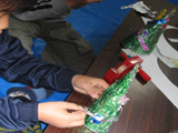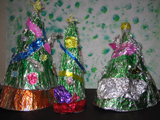 早いものでもう12月。12月といえばクリスマスというわけでクリスマス特集第一弾はアルミホイルのクリスマスツリーです。ホイルにペンで色を塗ったメタリックな感じにみんな嬉しそうでした。