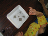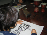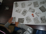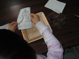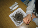 もうすぐ3月。というわけで、みんなで超簡単おひなさまを作りました。小さい小さい親指サイズのおひなさまなのでボンドはすこ〜し、うす〜くのばして使います・・・ところが「ボンドくださ〜い!!」とあちこちからボンド追加の声。気がつけば親指サイズのおひなさまのまわりには大きなぼんぼりやひな壇、ケースが作られてなんとゴージャスに発展しました。