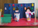 もうすぐ3月。というわけで、みんなで超簡単おひなさまを作りました。小さい小さい親指サイズのおひなさまなのでボンドはすこ〜し、うす〜くのばして使います・・・ところが「ボンドくださ〜い!!」とあちこちからボンド追加の声。気がつけば親指サイズのおひなさまのまわりには大きなぼんぼりやひな壇、ケースが作られてなんとゴージャスに発展しました。