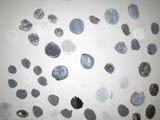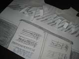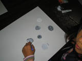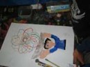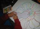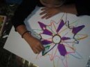 厚紙を好きなカタチに切って、少しずつ回転させながらの形取りです。なんと安易なタイトルをつけてしまったのでしょう。いきなり『花』だなんて、これは反省です。でもさすがらぴすっこ、タイトルにはさほど拘らず、ドーナツやら車輪やらいろんなものが誕生しました♪