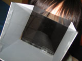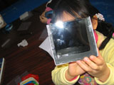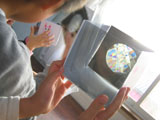 偏光板を使ってアートします♪まずは下左端の画像のような箱を作って・・・立体作品(中央の画像)を入れてみたり、平面作品(右端の画像)を入れてみたり、楽しみ方はいろいろ。箱の中で作品を回転させるとどんどん色が変化します。