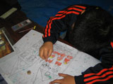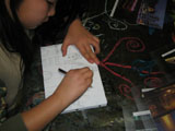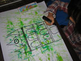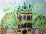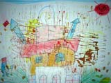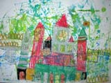 月・水・土曜クラスは絵の具で遊んだ画用紙にペンやコンテ、色鉛筆などを使ってお城を描きます。