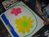 多義図形のお勉強・・・ではなくて、多義図形で遊んじゃいます。あの有名な「ルビンの杯」は意図的に描かれた多義図形ですが、世の中のあらゆるものは同じものでも人によって見え方はいろいろ・・・。だから、少し話はずれるのですが、「さあ、ひまわりの花を描きましょう。花びらは黄色、真ん中の種のところは茶色、茎は黄緑で葉っぱは緑よ。」なんて指導はあってはならない。そんな指導の中で、例えば誰かが花びらを青く塗ってたりすると、「そんなんちゃうで〜」と近くのこに否定されてしまうのです。表現を否定されることは、小さなこにはかなりショックです。「表現の自由」なんて言葉が大昔から普通にあるのに、こういった指導方法は未だに消えてはいません。ならばそんなことに負けない強い心を育てていきましょう。自分の思いをきちんと伝える力を身につけていきましょう。