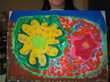 作品返却の時期がやってきました{/揺れるハート/}昨年度同様、作品収納バッグに絵の具でど〜〜んと自由に描いてもらうことにしました。