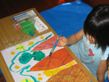 前半は先月のタケノコの絵に絵の具で味付け。後半の「飛ばしてみよう・・・」は写真を撮り忘れてしまったので後日報告します{/まいった/}{/汗/}