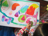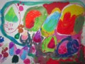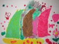 左から・・・心地よい春風を感じるたくまくん(小1)、元気いっぱいすくすく育っていく感じのあやのちゃん(小1)、なぜかひとつひとつに名前がついてカラフルなさやちゃん(小1)、気合いのはいった線がすばらしいまいちゃん(小2)の作品です。