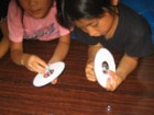 妙なタイトルをつけてしまいましたが、新発売の納豆{/!/}ではなくて、これと要らなくなったコンパクトディスクを使った簡単な工作です。「さあ、この材料でいったいなにができるでしょう?」「え〜っ、なんやろ」「あっ、コマ!」すぐにわかっちゃいました{/嬉しい/}