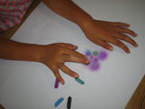 絵の具と虹のお話の後ですが・・・コンテで葡萄です{/嬉しい/}{/汗/}「さあ{/揺れるハート/}紫色で葡萄を描きましょう{/複数ハート/}」なあ〜んて野暮なことは申しません。今回のお約束は「必ず色を混ぜてつくる」こと。コンテは小さいこでも指で楽〜〜ぅに混ぜることができます。