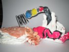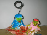 紙粘土とワイヤーで作るカードスタンドです。みんな手も顔も紙粘土の粉で真っ白にしながら小さいのや大きいの、自由に作りました・・・あっ、カードスタンドってこと、いちおう忘れないでねっ・・・