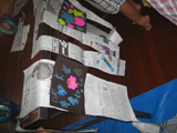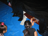 さてさて、そのなが〜〜い新聞や蛍光絵の具で描いた絵を飾り付けた暗室を作りました。