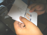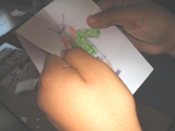 〜仕掛けその2〜折り目を利用してぴょこぴょこかわる変身カード。こちらはなんだかユーモラス。こどもたちも「ぷっ」と吹き出しながら作りました。画像では動きがまったくわからないのですが、ぴょこっと変身させるのに、ちょっとしたコツがあります。小さなこも何度か練習すると・・・「あっ、できたっ♪」