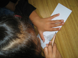まずはかる〜〜く鉛筆で濃淡の練習。それからガース・ウイリアムズの「しろいうさぎとくろいうさぎ」を紹介ました。あちこちから「知ってる〜〜♪」って声・・・さすが♪