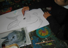 細い鉛筆でひとつのものを描き続けるのは結構大変な作業です。でも、ツボにはまると・・・「あ〜なんかこれ面白い」帰る時間になっても「もうちょっとだけ」ってな声もありました♪