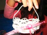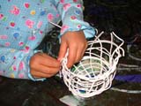 これはまあホントに落ち着きが肝心。落ち着きといえば土曜クラス。現在最年少のななこちゃんも小さい手で頑張って、素敵なカゴが編み上がりました。絵の具を塗ったり、飾りをつけたりして、さあ、何を入れようかな〜♪