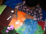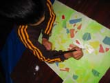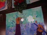 「つよい色ってどれかな〜?」「黒!」「赤!」・・・「白」って答えるこは、あまりいません。でも白くんは意外と力持ち。前につくったティッシュ画用紙で、今回は白くんが大活躍します。