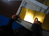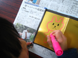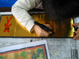 お正月明けは軽めの工作、でも目の覚めるような金色の屏風作りです。「紅白梅図」「風神雷神」なんかも紹介しつつ、みんなそれぞれ好きな絵を描きました。