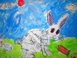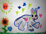 左が、歌を口ずさみながらお散歩中の雰囲気、まいちゃん(小3)の作品。右が、「いっただっきまあ〜す!」とお食事中、まいちゃん(小4)の作品。おっ♪今日はまいちゃんまいちゃん♪