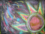 こちらは水曜クラスはるなちゃん(小3)の太陽。じっくり考えながら時間をかけて描いた彼女の太陽は、様々な色で光り輝いています。