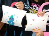 クリスマスと言えばプレゼント。家族やお友達とプレゼント交換なんてこともあるのでは?ってことでギフトボックスです。右の画像、ポーズをとってくれたのがあつきちゃん(5才)。小さいながらきれいに手際よく、自分で考えた持ち手もつけて一番に完成{/嬉しい/}