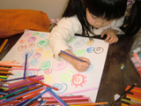 「石膏で〜」と平行して、色鉛筆で遊んでいます。某通販の「500色の色鉛筆」ですが、一応最初は同系色ごとに箱に収められていました。でも、みんなで使えばあっと言う間にごちゃ混ぜ状態・・・{/まいった/}{/汗/}「さあっ{/!/}親戚色に分けてみよう♪」わいわいきゃっきゃっと、みんなのりのりで片付けてくれました{/揺れるハート/}