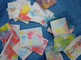 もう3月ではありますが、2月のマーブリングの続きです。今回はほとんどのクラスで油絵の具を使いました。あのヌルヌルとニオイの中、2時間夢中でやり続けたひともいました。で、と〜ってもきれいなマーブリングの紙を使ってコラージュです。