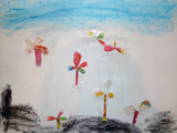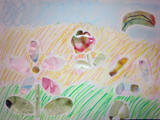 こちらは左から、しおりちゃん(小2)、よしきくん(小1)、まいちゃん(小4)の作品。春に向けて花をテーマに描きました。優しい春風が吹いて来そう〜♪