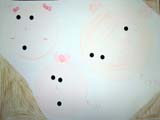 三つの「・」が集まった図形などが人の顔のように見える錯覚をシミュラクラ現象(類像現象)というのだそうです。そういえば小学生の頃「わぉっ!心霊写真だっ!」と、友達とおお騒ぎしていたものは、ほとんどこれだったのかな?さて、らぴすっこはこの三つの「・」でどんなふうにシミュラクラってくれるのでしょうか。