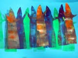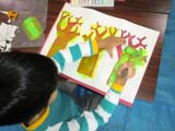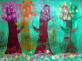 左から、紅葉の表現が美しいあきねちゃん(小6)、小鳥の歌が聞こえてきそうなななこちゃん(小1)、見事な枝ぶりのたくまくん(小3)の作品です。
