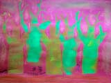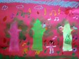 そしてこちらは一つの空間の中に時間の経過を表現した(え〜っと、昔何かで習った時間軸のモンタージュっていうんでしたっけ?)あかねちゃん(小6)の作品です。