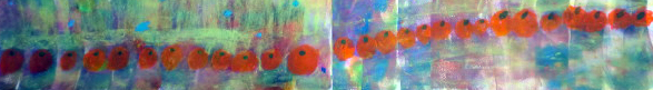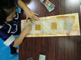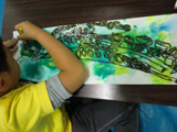 こちらはみくちゃん(小3)みずきちゃん(6才)姉妹の作品。みかんのなが〜い行列です。