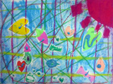 左から、落ち着いた温かい感じのしょうとくん(小2)、と〜〜ってもお洒落な色合いのあやねちゃん(小4)、しっかりした線が魅力的なさやちゃん(小3)の作品。