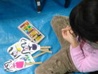 考え込んでしまってあまり作れなかったひと、ぱぱっと作って、そのペープサートを片手に走り回る(レースです)ひと、ワイワイおしゃべりしながらた〜っくさん作るひと、いろいろでした。ま、それも頭の中はおはなしがいっぱいの遊びですね{/OK/}