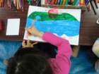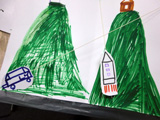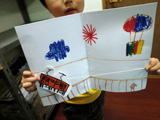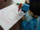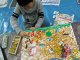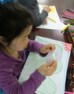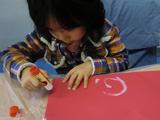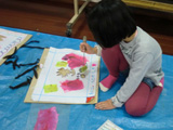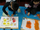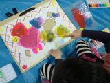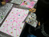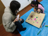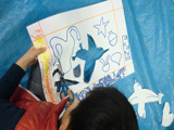 3月最終は、いつものように作品収納バッグです。あ〜だこ〜だ言わずに自由にデザインしてもらいます・・・なのですが、今回はステンシル。ここで気をつけないといけないのが、下描き段階でパワー全開・・・というか、ついつい描くのに夢中になって、後で切り抜くことを忘れて中まで描き込んで、さらに色まで塗ってしまうひとが結構いること。低年齢のひとだとあまりにも気の毒なので、何度も何度も声をかけます。「あとできっちゃうんだよ〜ぉ」「ばらばらになっちゃうかもよ〜ぉ」