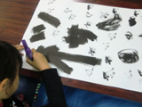 さて今回は、みんなの名前の中の一文字を四つ切り画用紙に墨汁でど〜〜んと描いてもらいました。