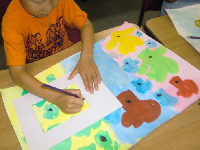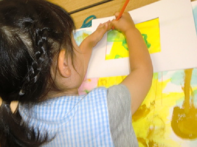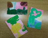 絵の具でたくさん花を描いて、ポストカード大にトリミング。小さな額に入れて飾ってもいいし、誰かに送っても良し♪